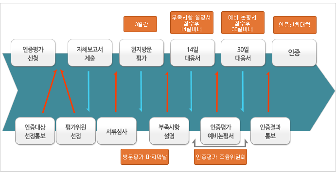 - 공학교육인증원의 방문평가로써 아래와 같은 절차에 의거 평가.